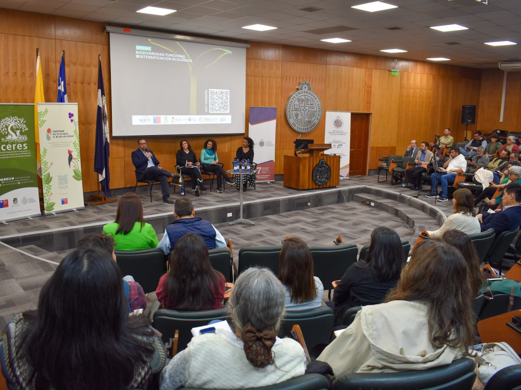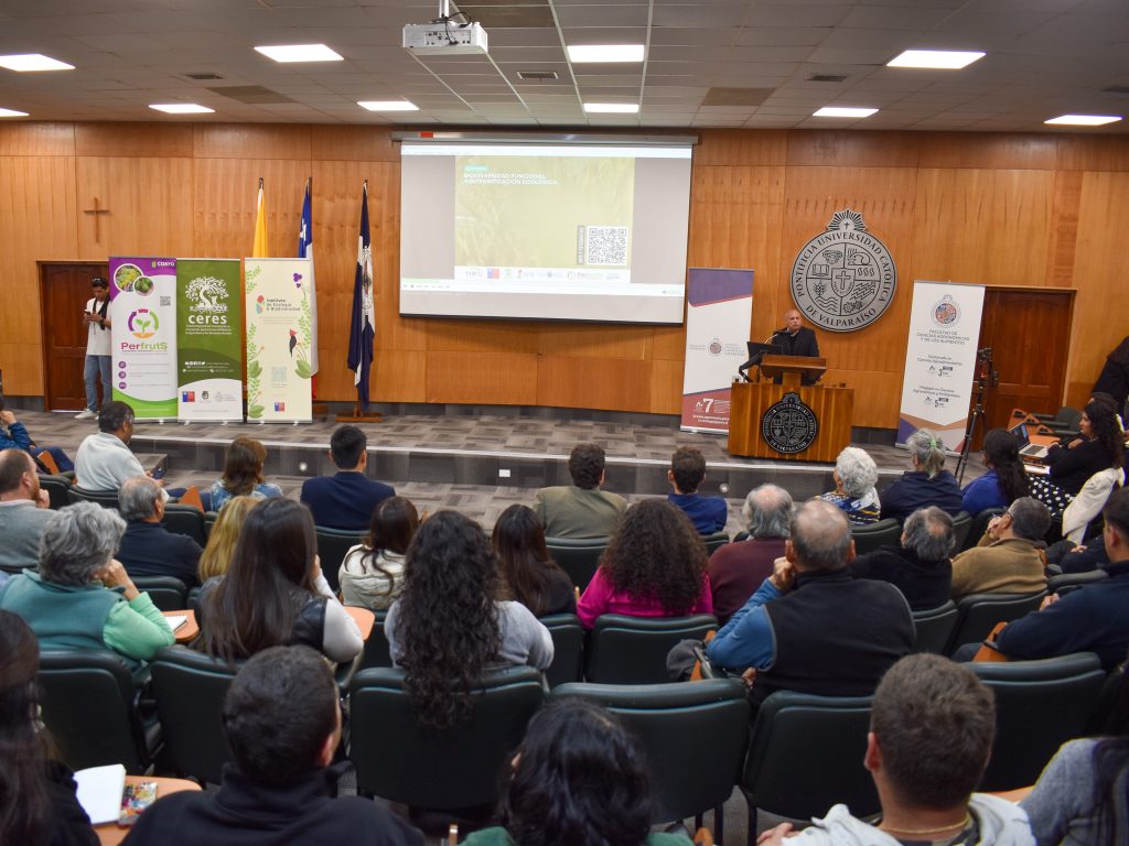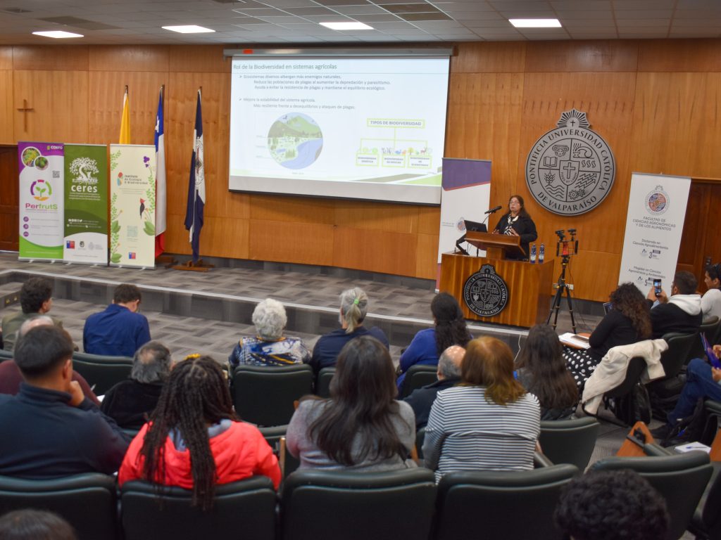 Más de 170 personas, entre agricultores, profesionales del agro y académicos de todo el país, participaron en el seminario “Biodiversidad funcional e intensificación ecológica, perspectivas para la agricultura en transición”. La iniciativa, organizada en Quillota por Centro Regional Ceres, el Instituto de Ecología y Biodiversidad (IEB), la Escuela de Agronomía de la Pontificia Universidad Católica de Valparaíso (PUCV) y el Programa Transforma Fruticultura Sustentable (PerfrutS) de CORFO.