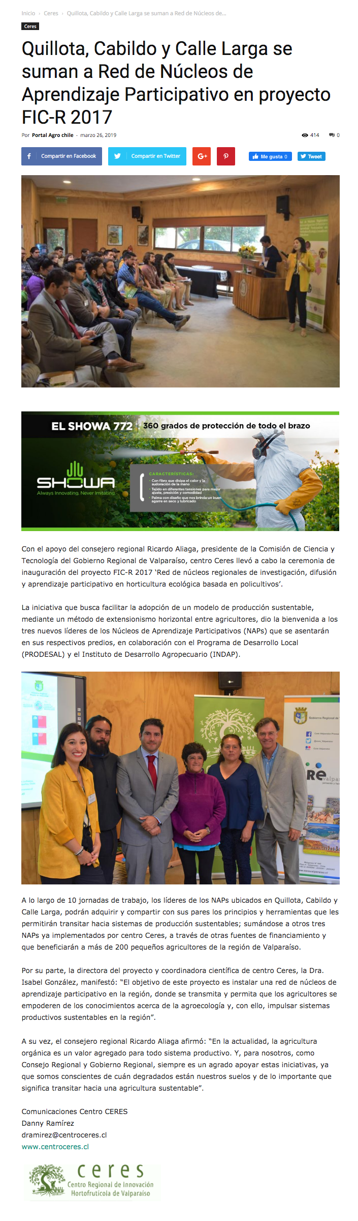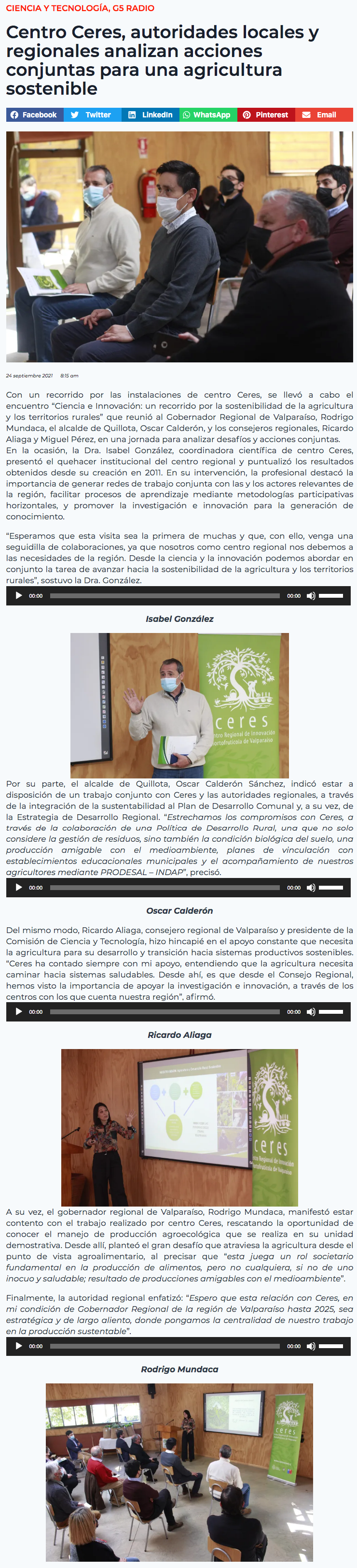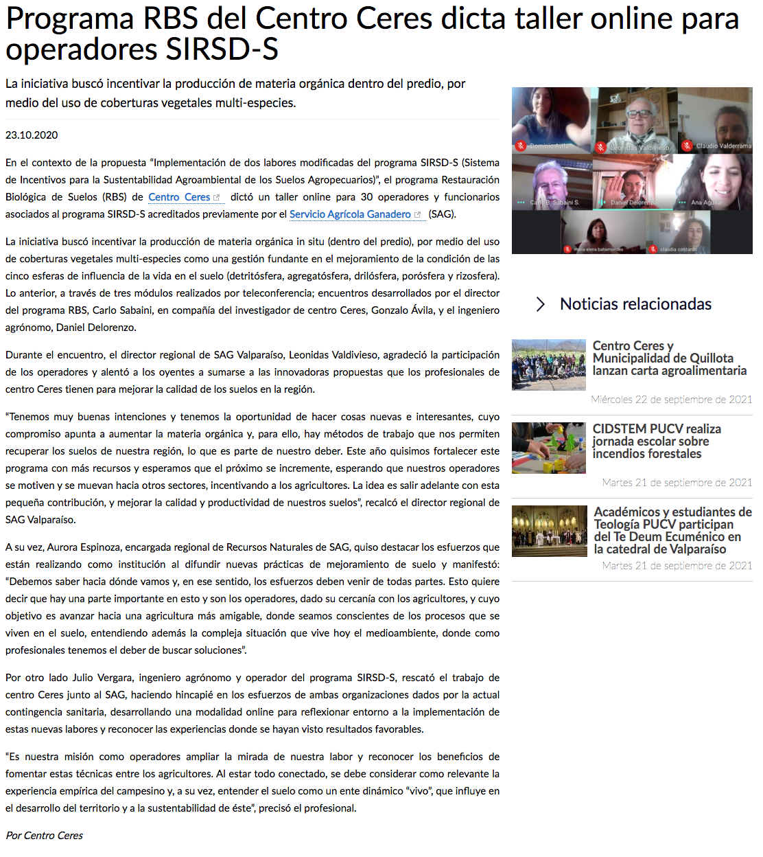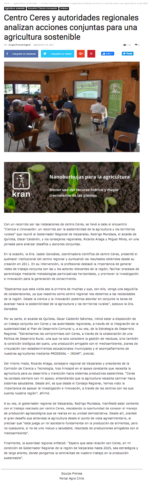 - Centro Ceres, autoridades locales y regionales analizan acciones conjuntas para una agricultura sostenible