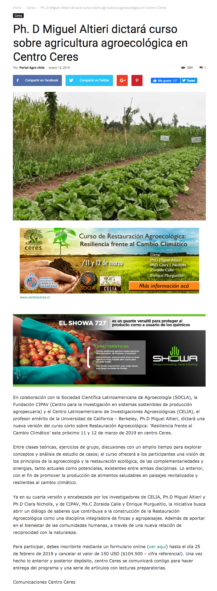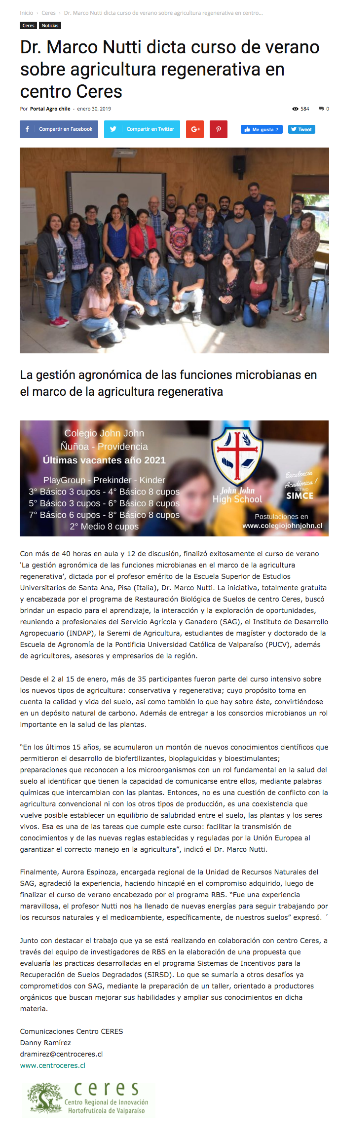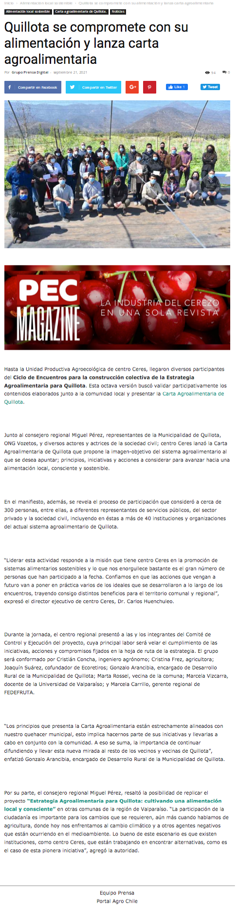 - Centro Ceres, autoridades locales y regionales analizan acciones conjuntas para una agricultura sostenible