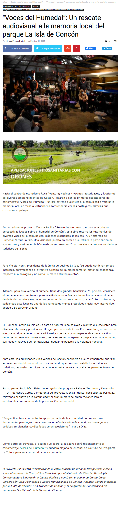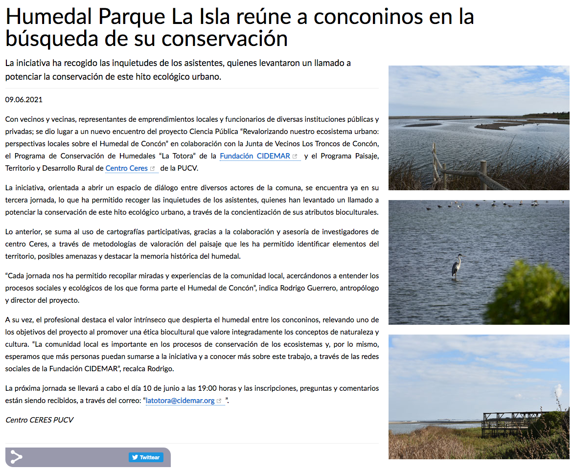 - “Voces del Humedal”: Un rescate audiovisual a la memoria local del parque La Isla de Concón